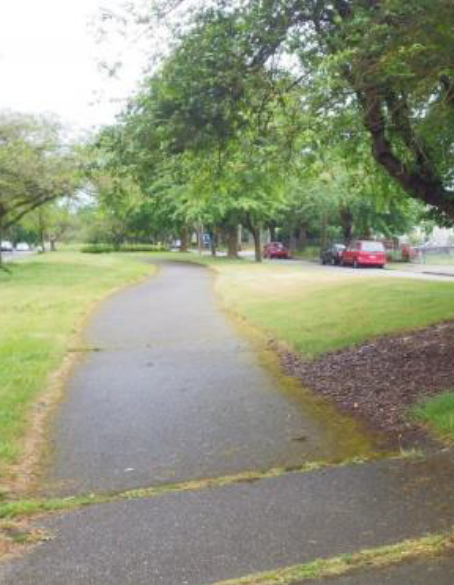 The Beacon Ave Trail is a 10 foot wide path that runs down the median of Beacon Ave south of Columbian Way. This trail is regularly used by people in the neighborhood for running and other recreation, as well as by those who struggle with the nearby broken/damaged sidewalks and prefer/need the trails somewhat smoother pavement.
